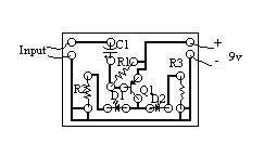 Uses of the circuitThis project can be used in an infinity of ways. Some of them can be useful, some for decoration, or simply just for fun. In my case, I used it as decoration for my room. I drilled five holes on a non useful CD and inserted one LED in each hole. I then connected them in parallel to the output of the circuit (the resistance from collector of the transistor). I put the circuit on the back of the CD and glued a 9 volt battery vertically to the CD so that it could support the CD sright up as well as to supply the power to the circuit. I put the circuit on my stereo system and connected the output of one speaker channel to the input of my device, and every time I turn my stereo on, I have a rythmic light that decorates my room giving it a taste of technology.